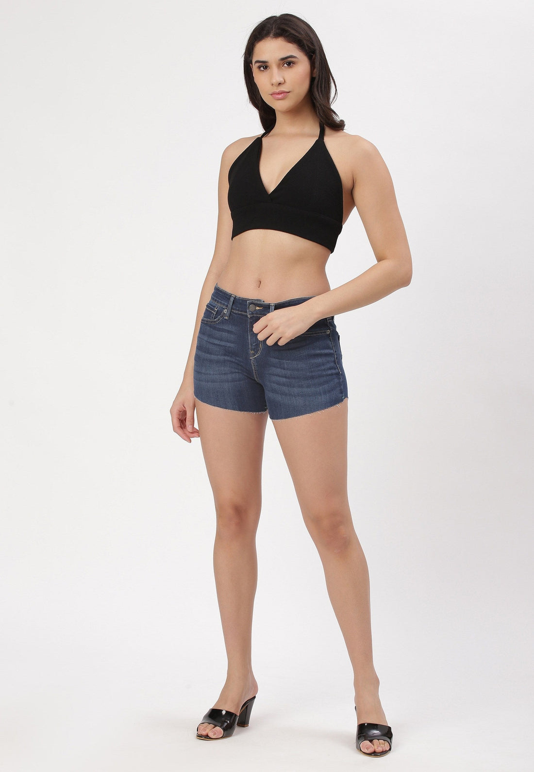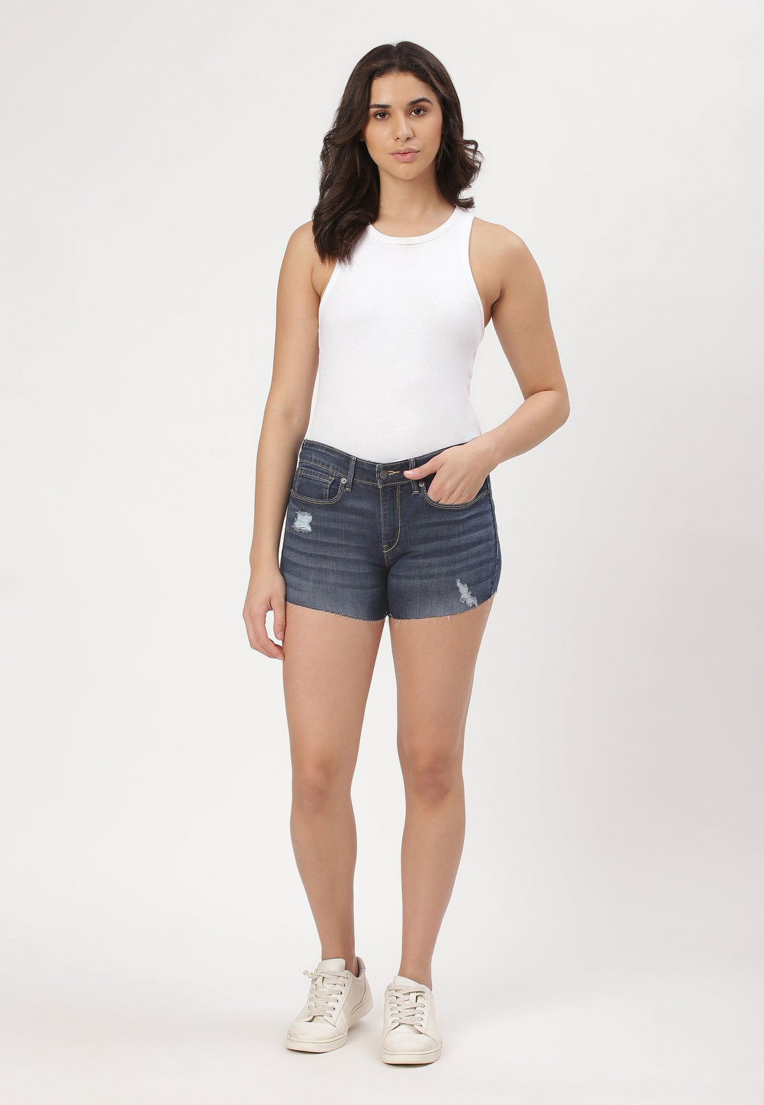 Mid Indigo High Rise Mom Fit Denim Shorts