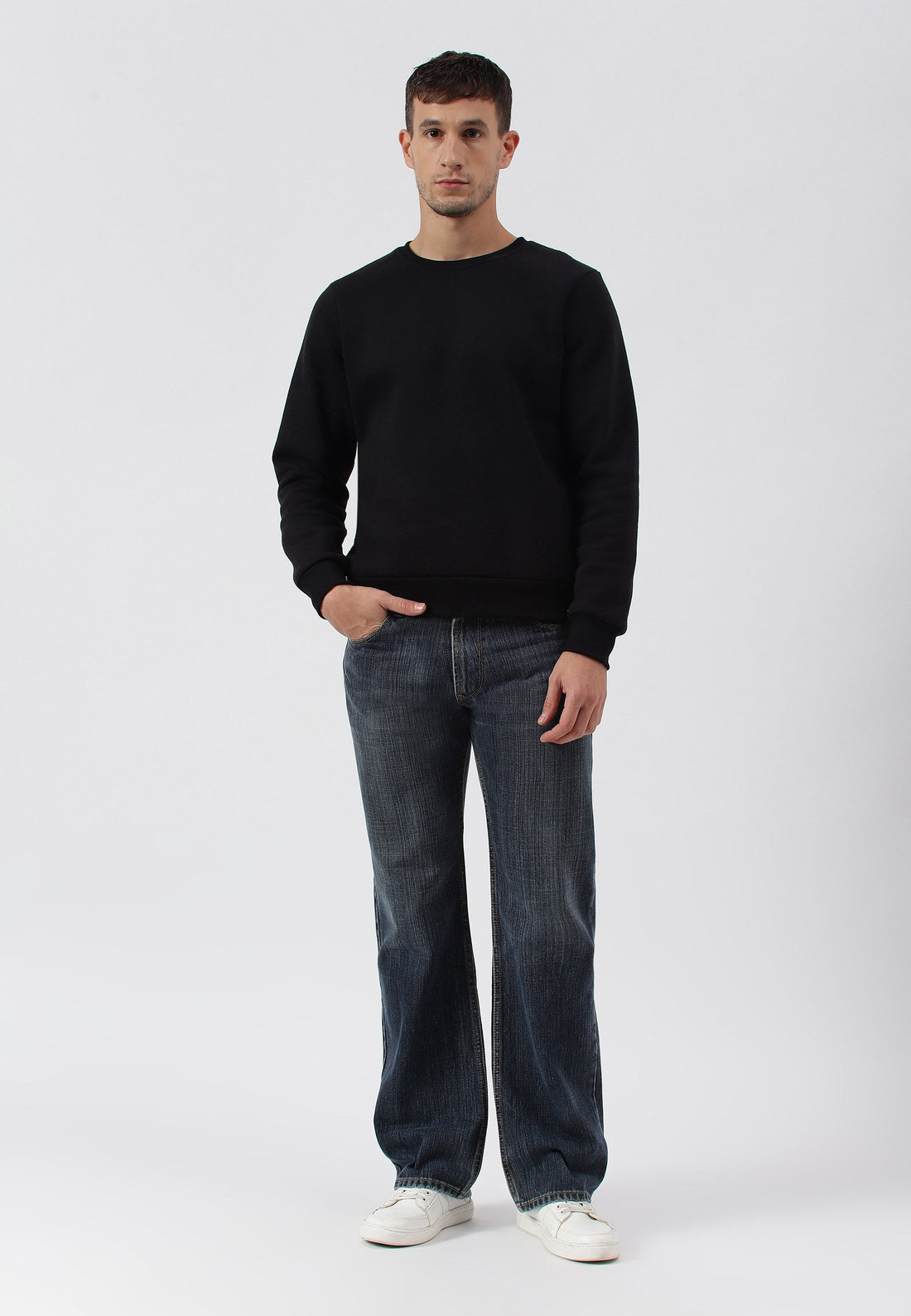 Men's black straight jeans that sit high on the waist with narrow leg openings. They...