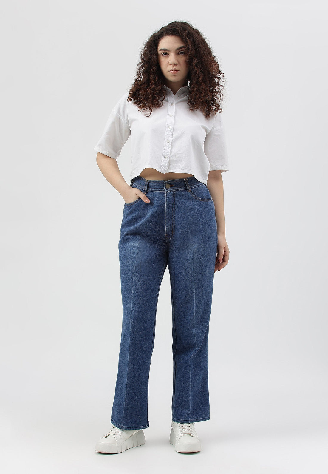 Women's mid indigo straight jeans that sit high on the waist with narrow leg openings....