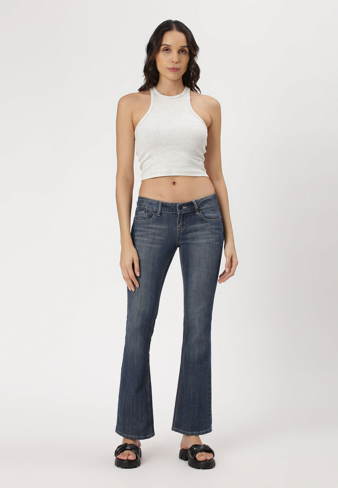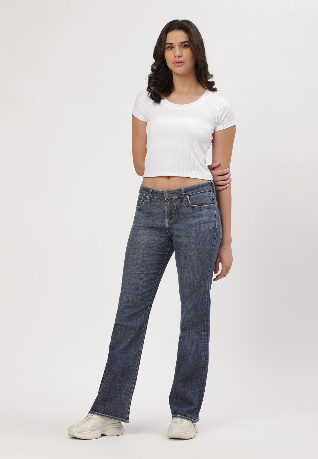 Mid Indigo Low Rise Bootcut Jeans