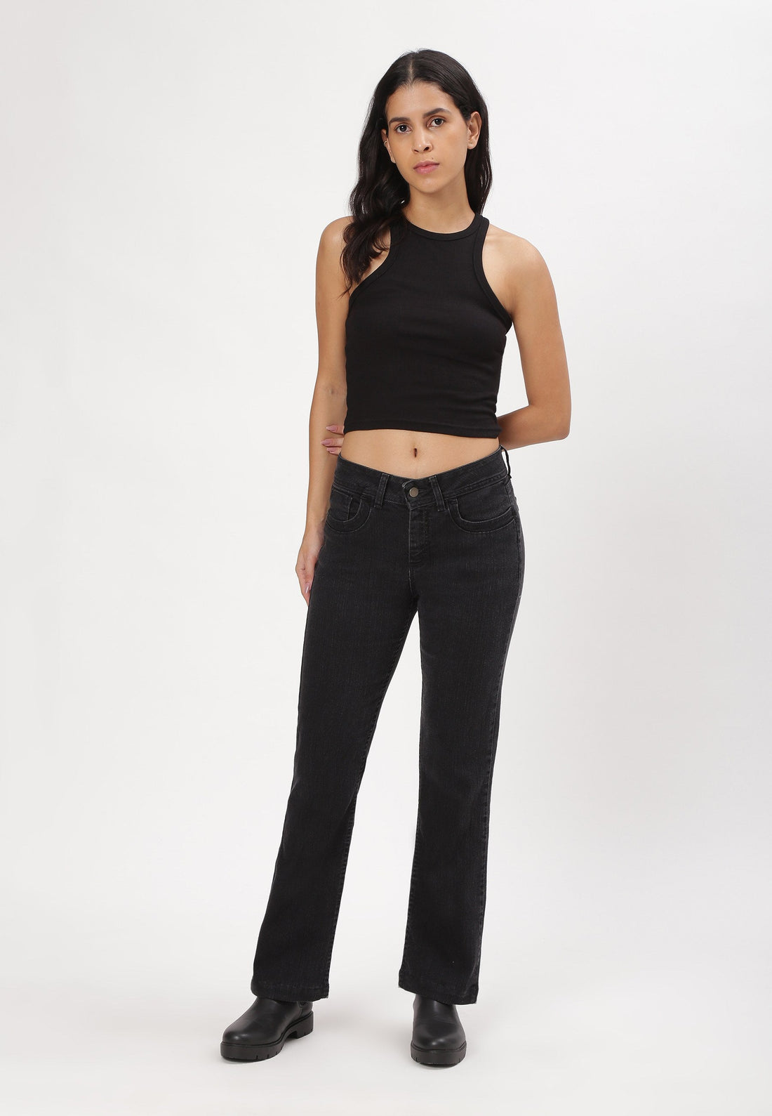 Black High Rise Straight Jeans