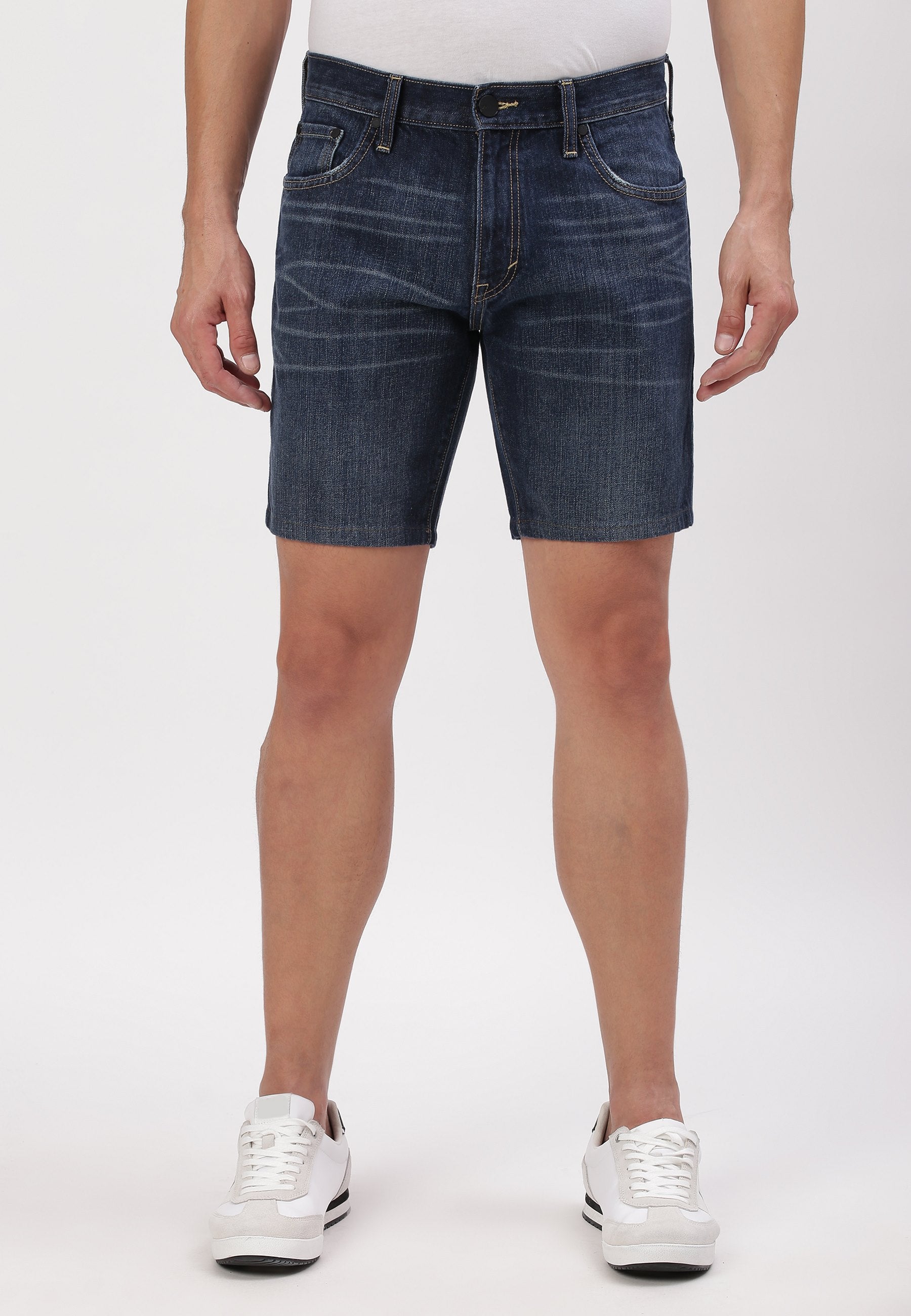 Dark Indigo Mid Rise Straight Denim Shorts