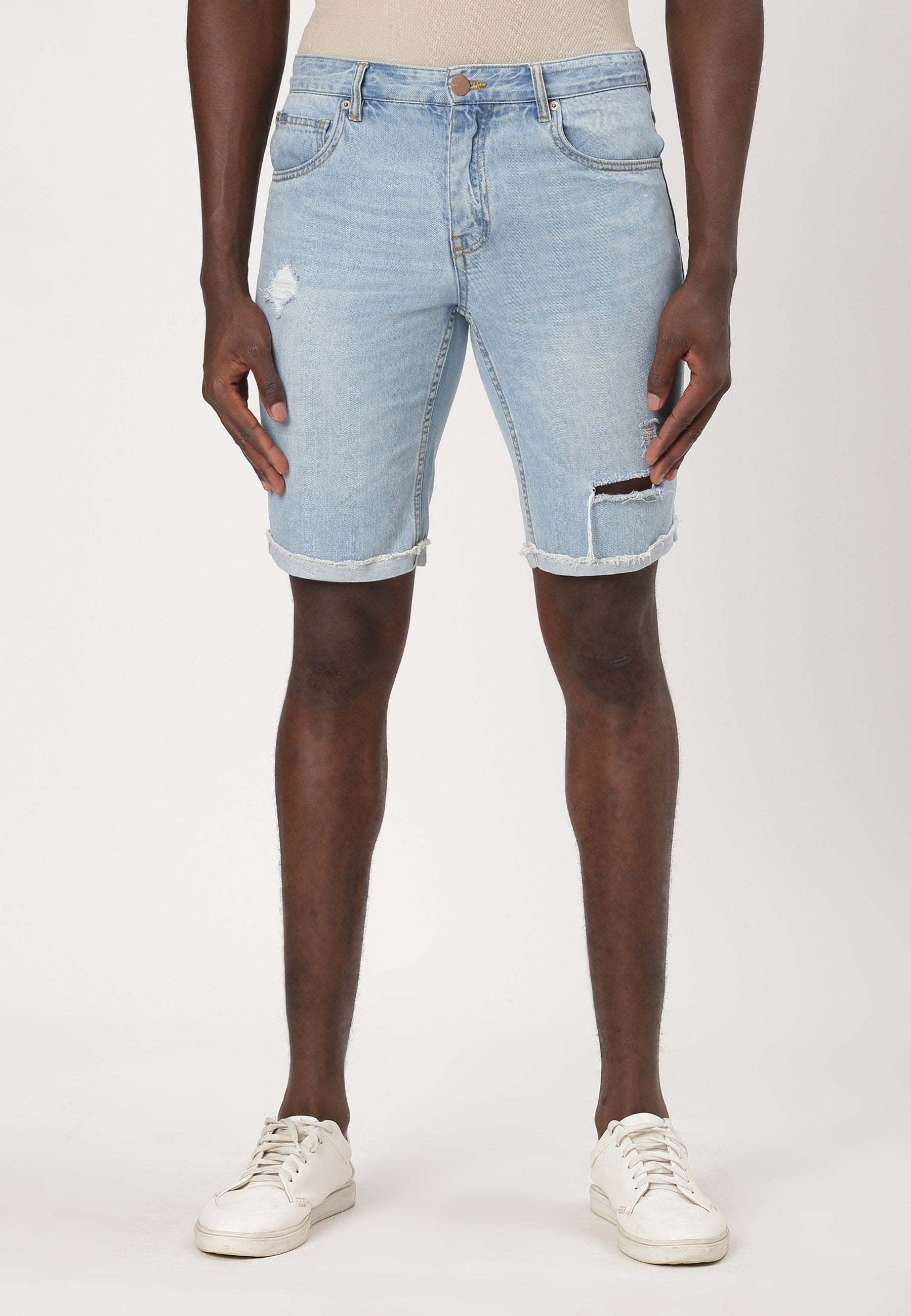 Light Indigo High Rise Slim Denim Shorts