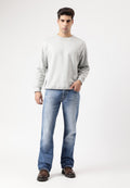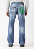 Men's mid indigo straight jeans that sit comfortably at the waist with narrow leg openings. They fit fuller through the hip and thigh and run straight from hip to ankle. They feature Un Denim's signature GreenPocket™ that says - ‘This is not a green pocket, it’s a protest sign, against overproduction, overconsumption and the destruction of our planet, our only home.’