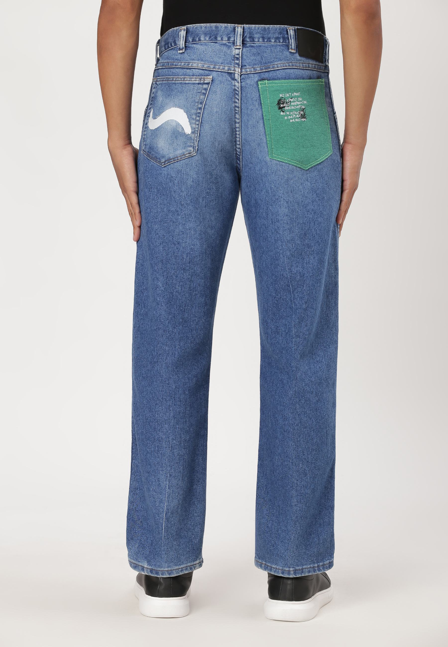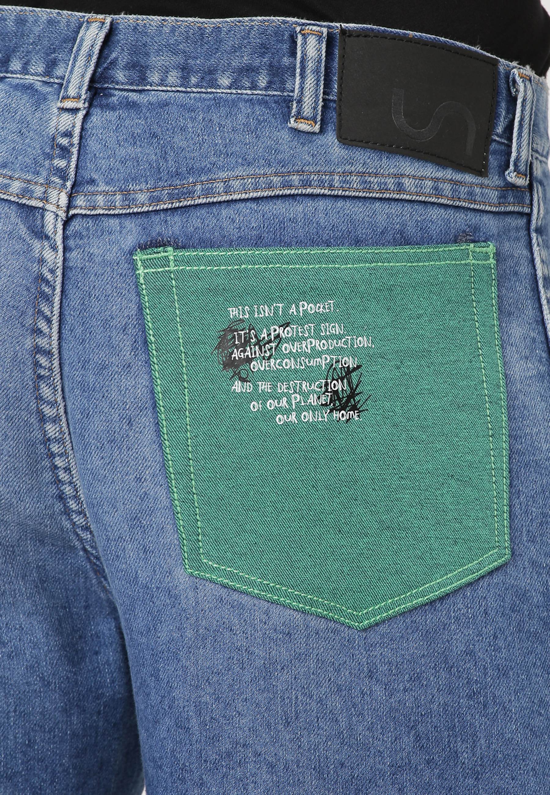 Men's mid indigo straight jeans that sit comfortably at the waist with narrow leg openings. They fit fuller through the hip and thigh and run straight from hip to ankle. They feature Un Denim's signature GreenPocket„¢ that says - This is not a green pocket, its a protest sign, against overproduction, overconsumption and the destruction of our planet, our only home.™