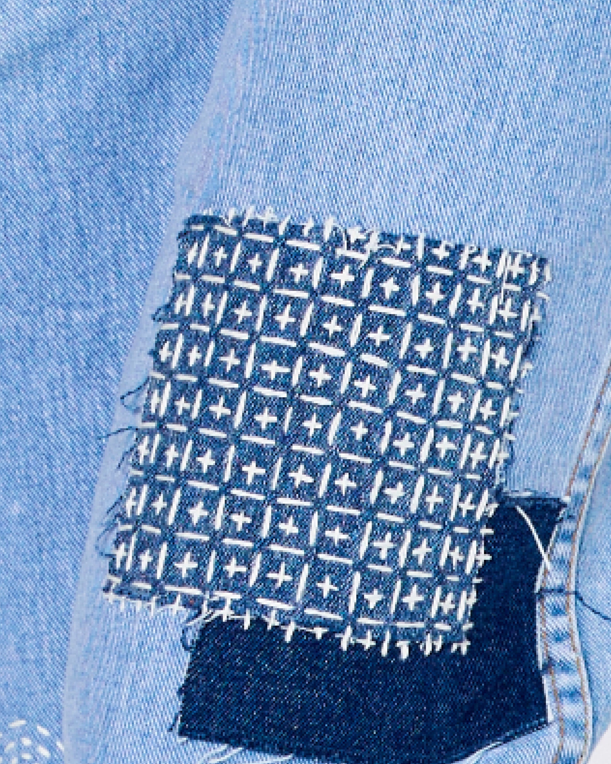 Upcycled from premium denim, these jeans are a testament to both craftsmanship and conscious fashion. The relaxed silhouette offers a universally flattering fit, while intricate sashiko-inspired stitching and patchwork detailing make each pair one-of-a-kind. Distressed elements add a rugged, lived-in appeal, balanced by reinforced repairs that enhance durability. Contrasting denim tones and hand-stitched accents on light to mid indigo create a striking fusion of tradition and streetwear . Functional front and back pockets ensure everyday ease, while the signature GreenPocket™ marks sustainable craftsmanship. Style with a mesh shirt, silver chain and loafers for an elevated night-out look. Functional front and back pockets ensure everyday ease, while the signature GreenPocket™ marks sustainable craftsmanship. Elevate them with a crisp white shirt or pair with a slouchy knit for cosy evenings.