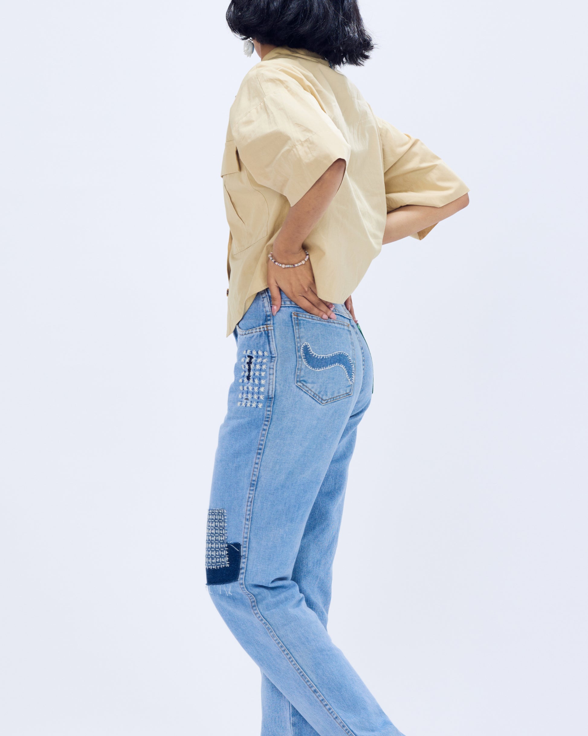 P.S.- Each pair of jeans is meticulously curated and upcycled by hand using Sashiko embroidering techniques. So the one you receive will have slight variations in rise, patch-work and colour from what you see in the picture, making it the only one of its kind to exist!