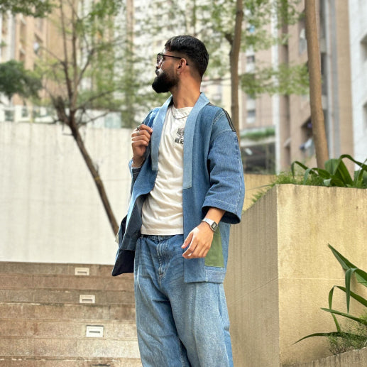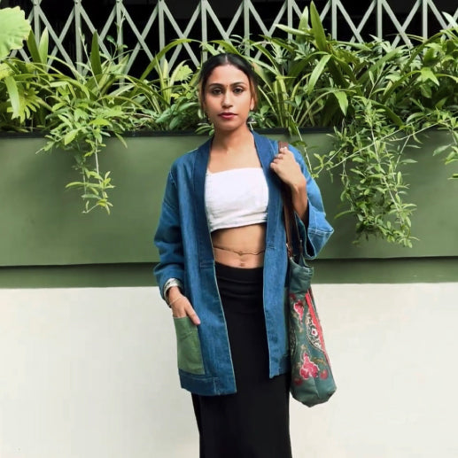 Upcycled Denim Kimono Jacket | Indigo & Ash | K235