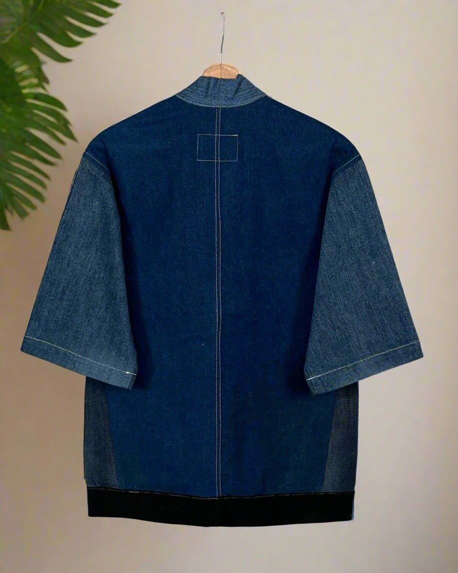 This unisex reconstructed kimono jacket in a relaxed fit is upcycled from rescued premium denim. Each Un Denim kimono is crafted from a hand-picked selection of unique denim segments. The segments are then carefully matched & contrasted to bring to life truly one-of-a-kind statement pieces. Each has its own special denim detailing and character, and you’ll never find two that look the same.Wide sleeves and an open front create a roomy and breezy silhouette that pairs well for both casual and formal styling.The kimono includes our signature GreenPocket™ to showcase your preference for conscious & sustainable fashion.