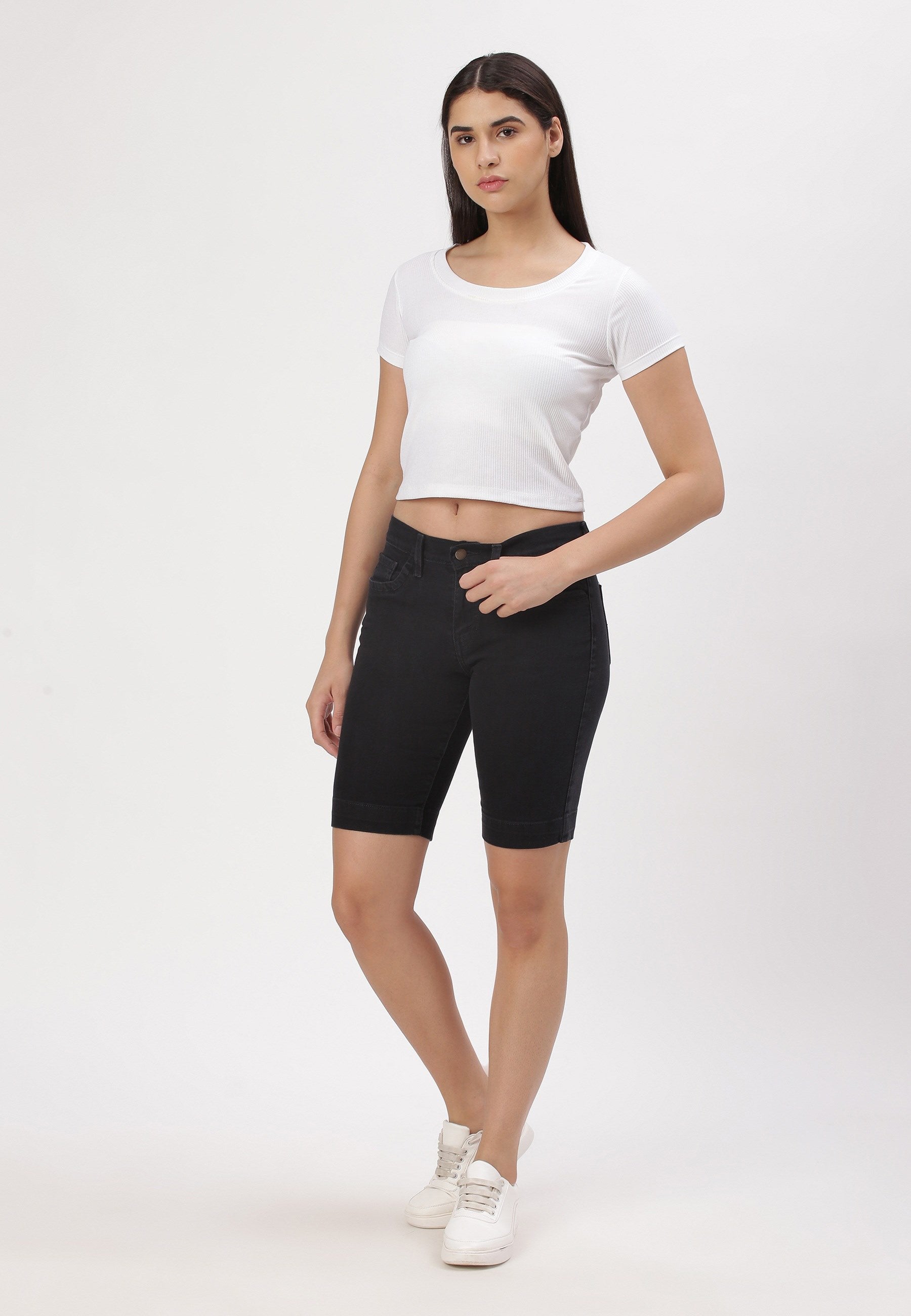 Black Mid Rise Cycling Denim Shorts