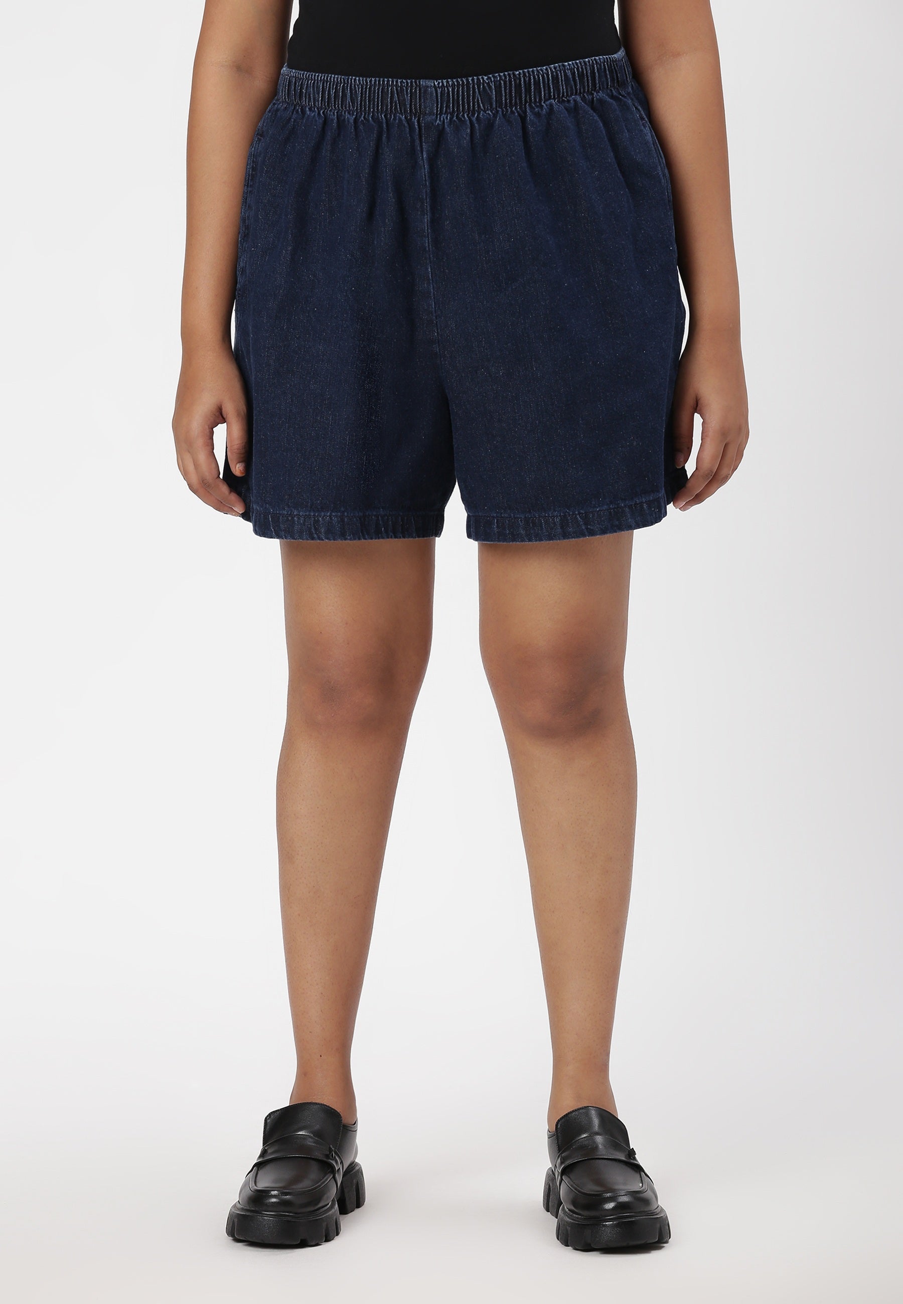 Dark Indigo High Rise Baggy Denim Shorts
