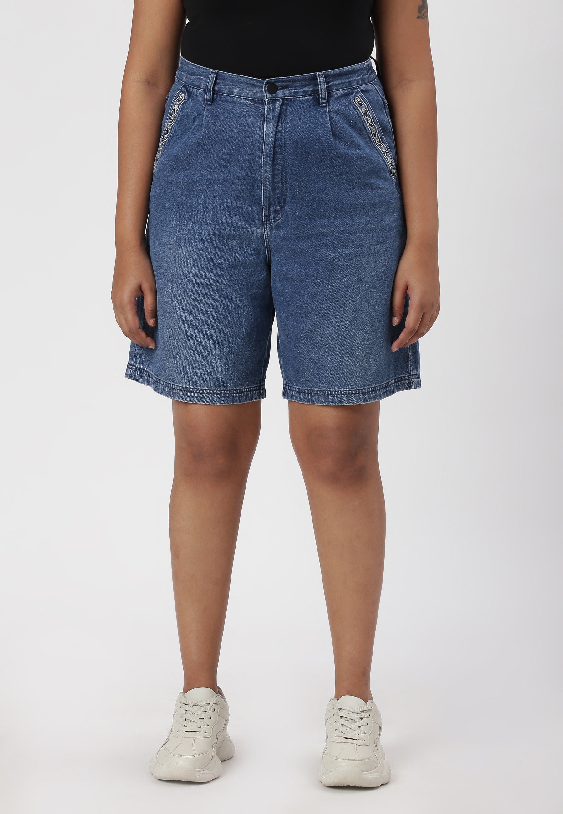 Dark Indigo High Rise Straight Denim Shorts