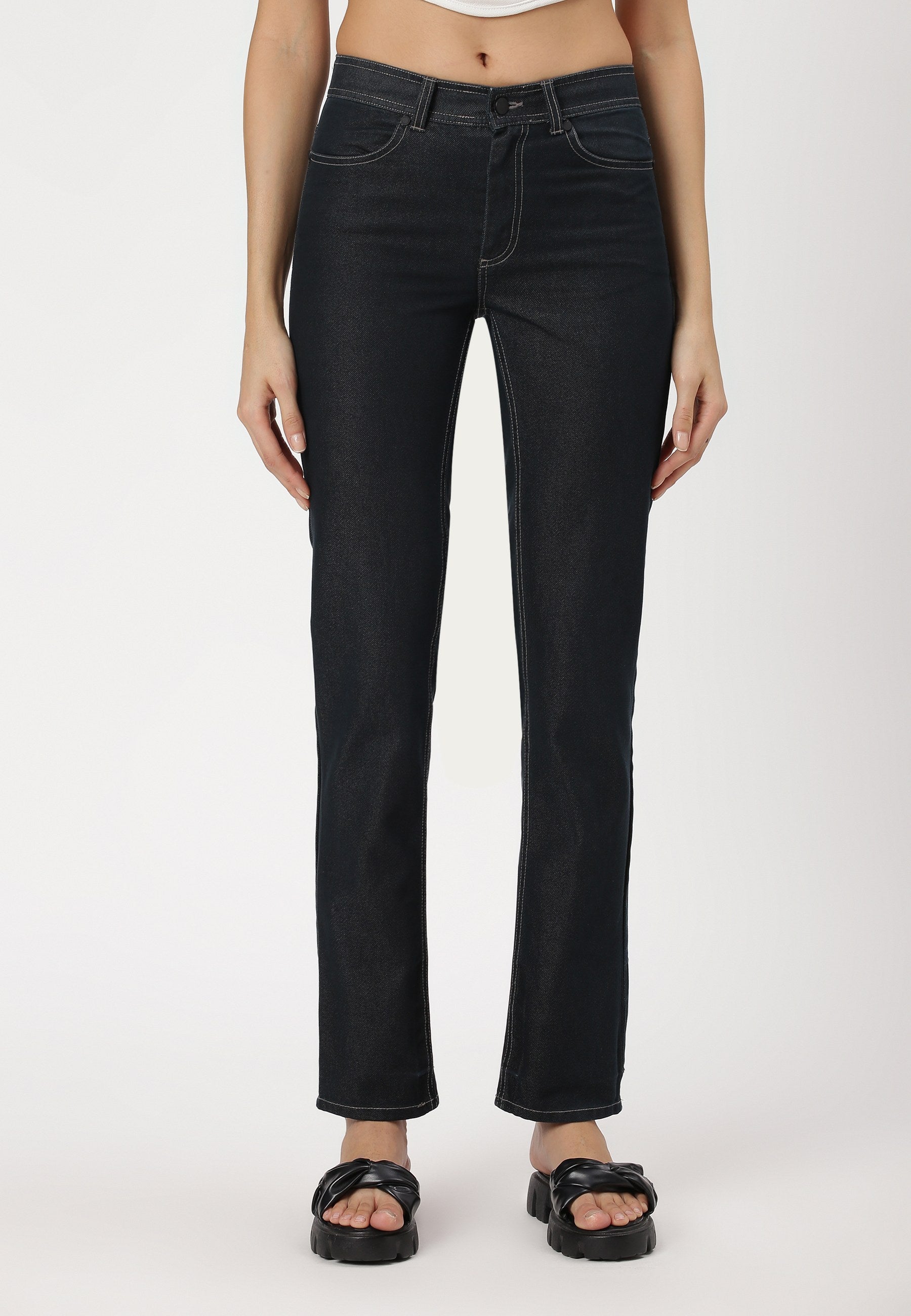 Dark Indigo Mid Rise Straight Jeans