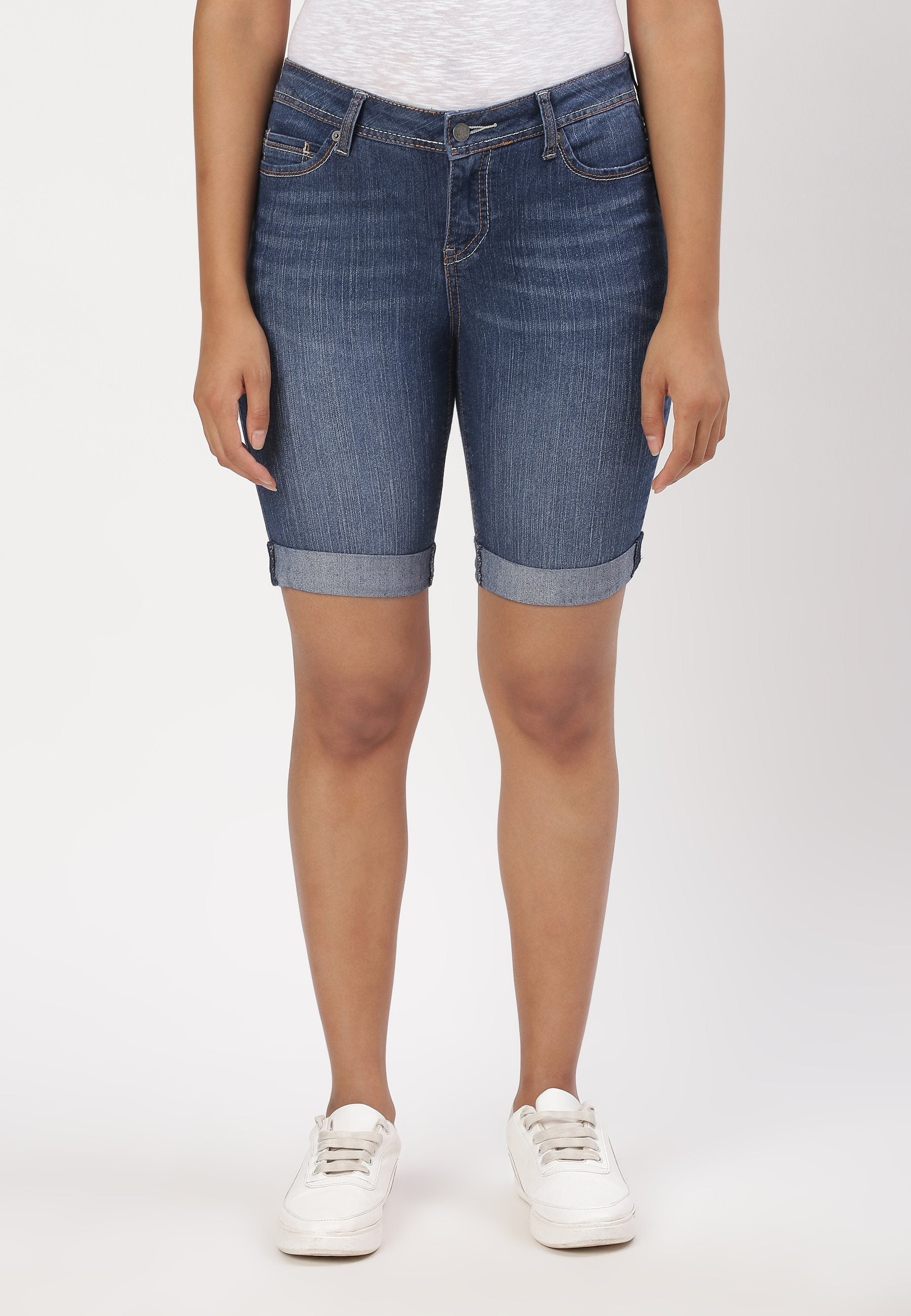 Dark Indigo Mid Rise Straight Denim Shorts