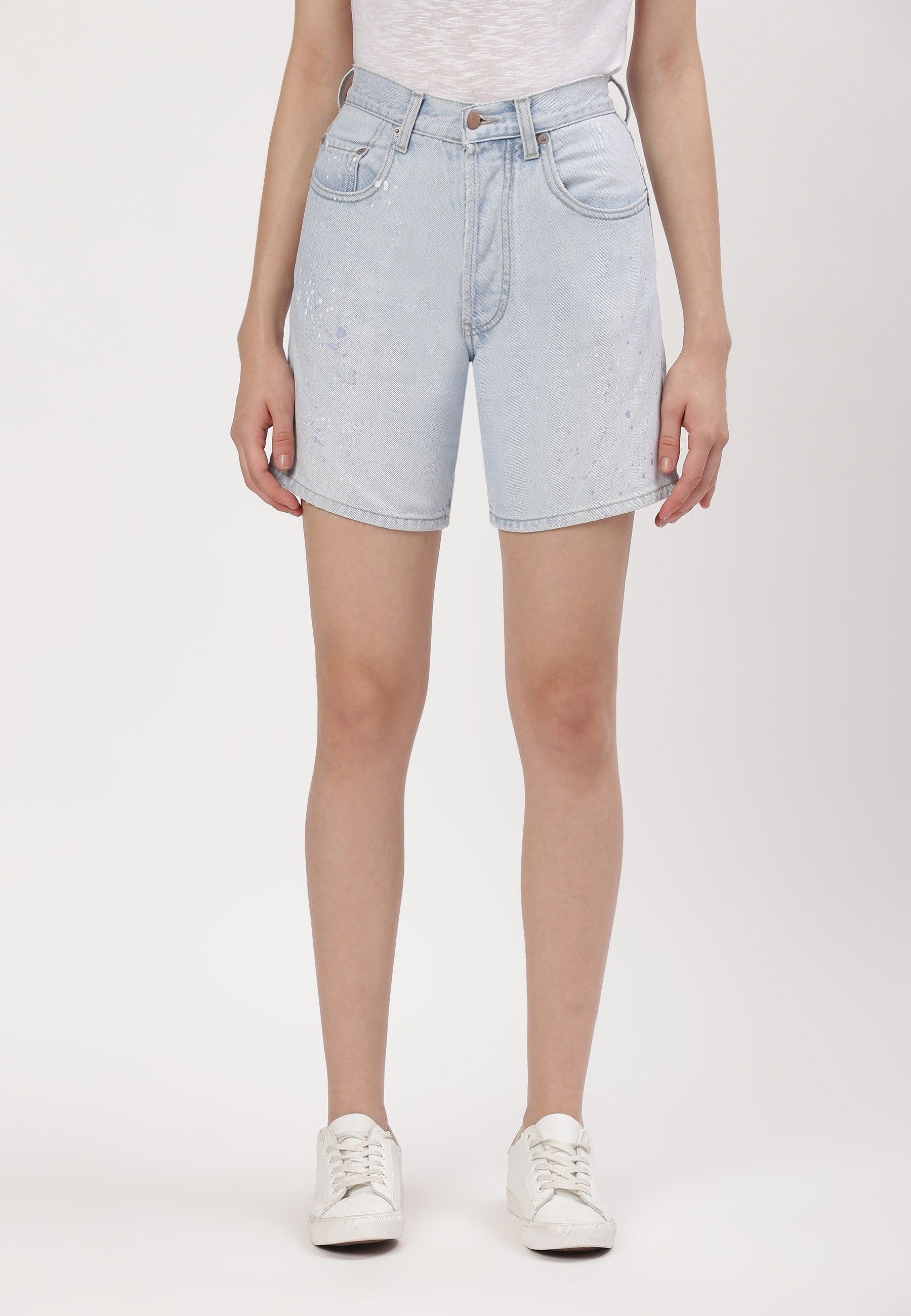 Light Indigo High Rise Mom Fit Denim Shorts