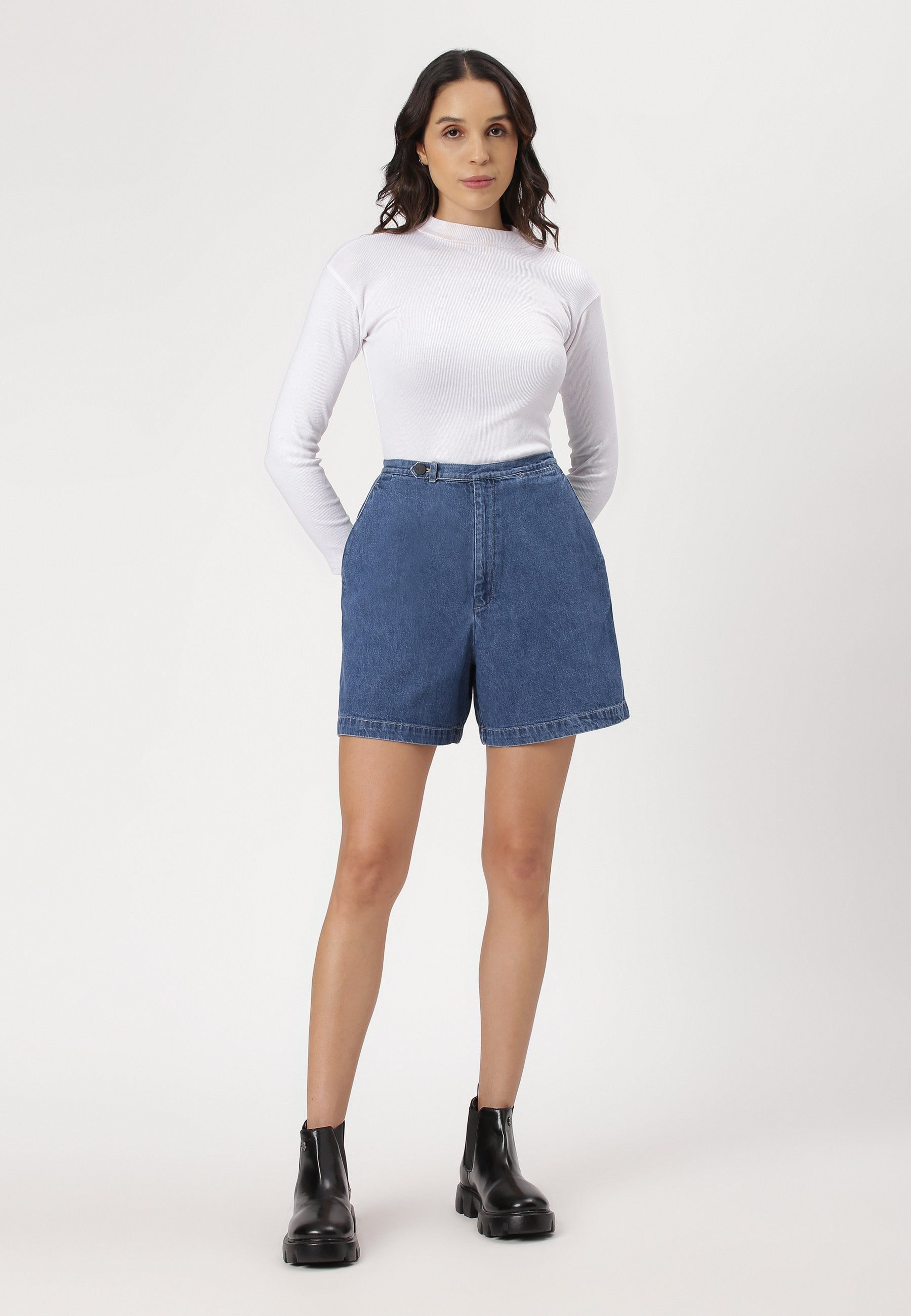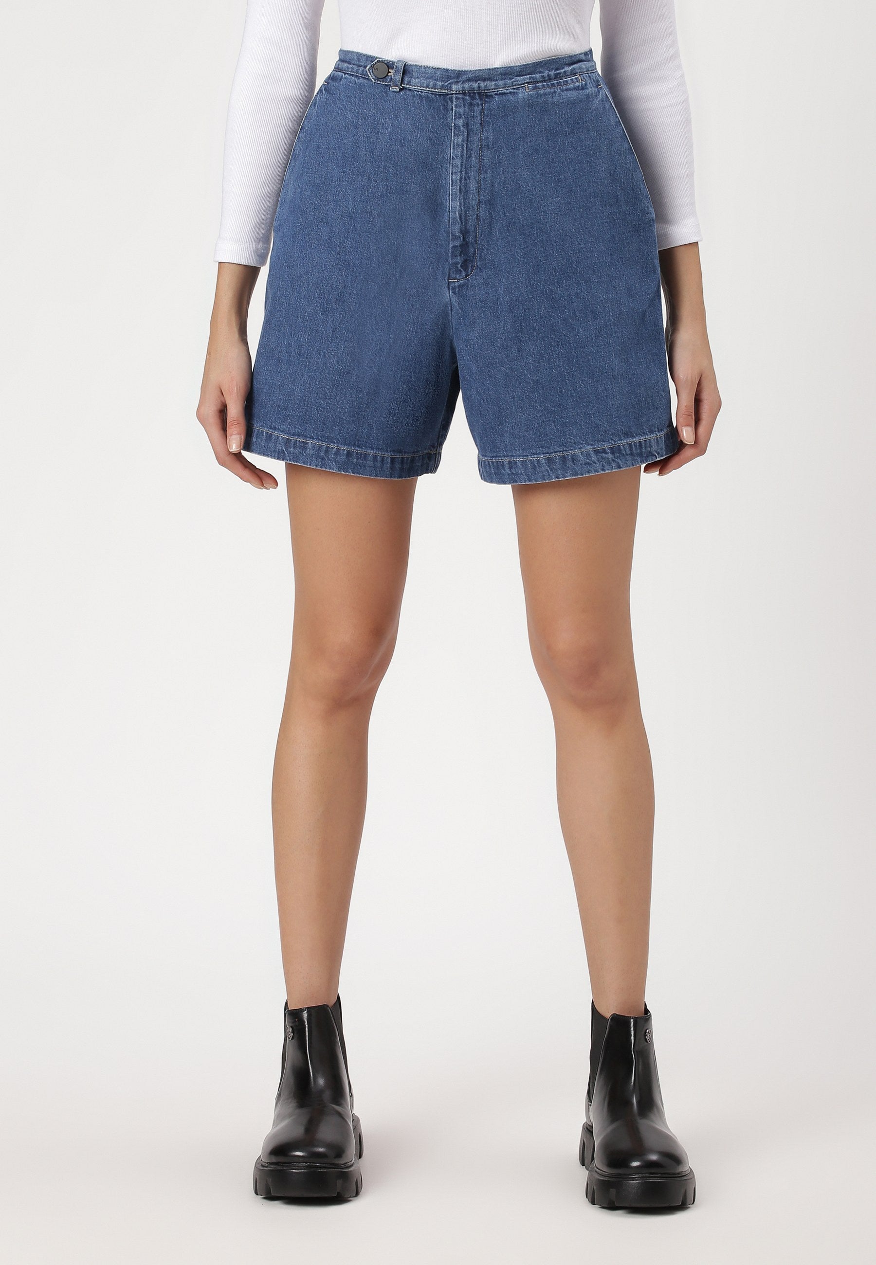 Mid Indigo High Rise Mom Fit Denim Shorts