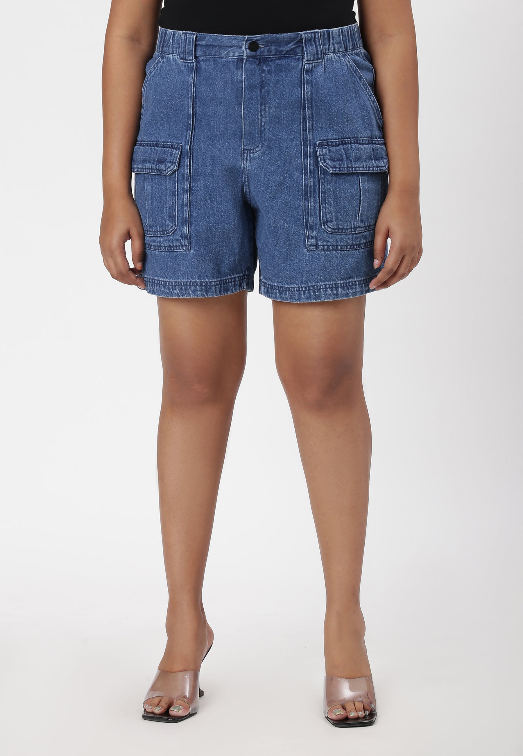 Mid Indigo High Rise Mom Fit Denim Shorts