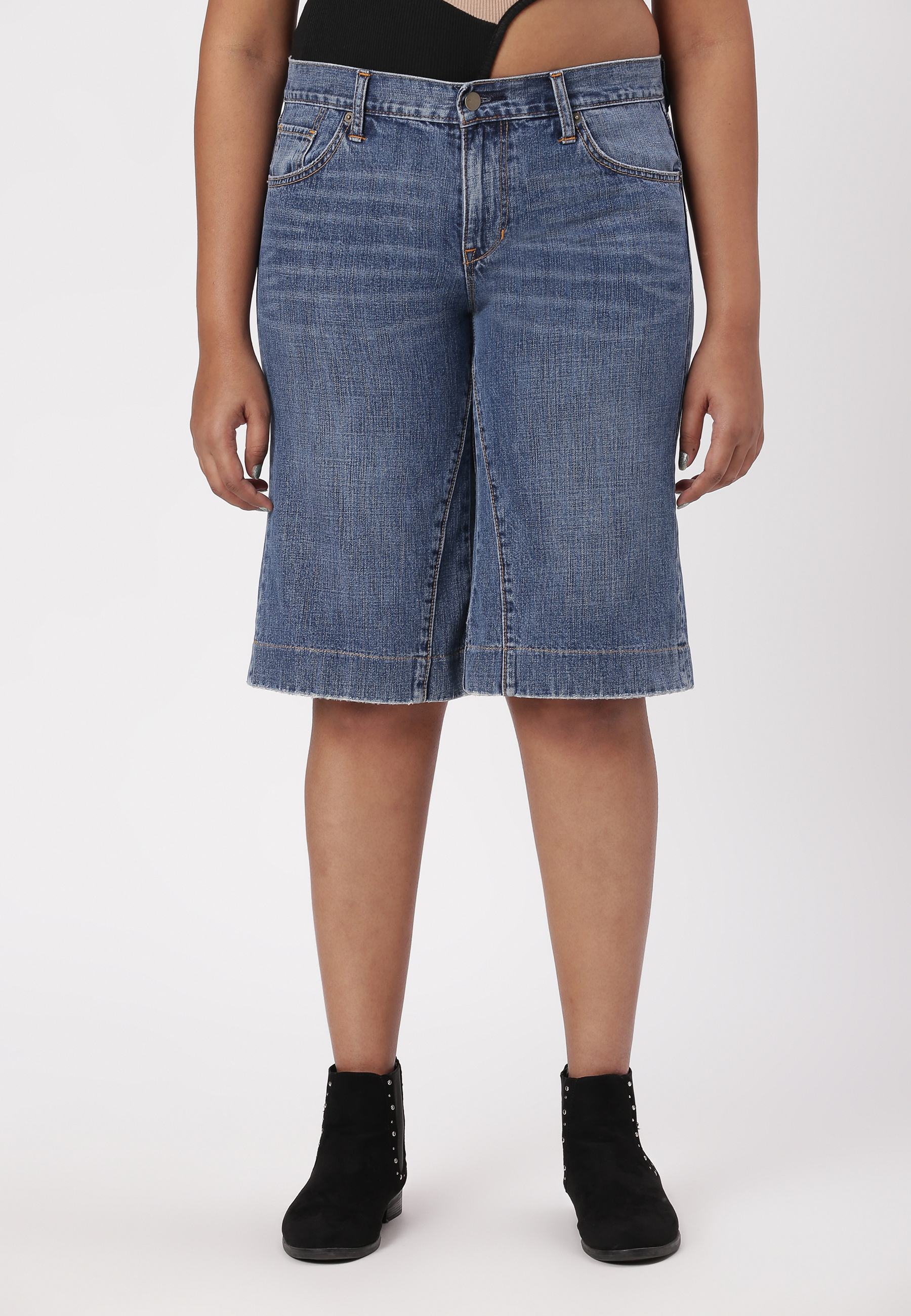 Mid Indigo Mid Rise Bermuda Denim Shorts