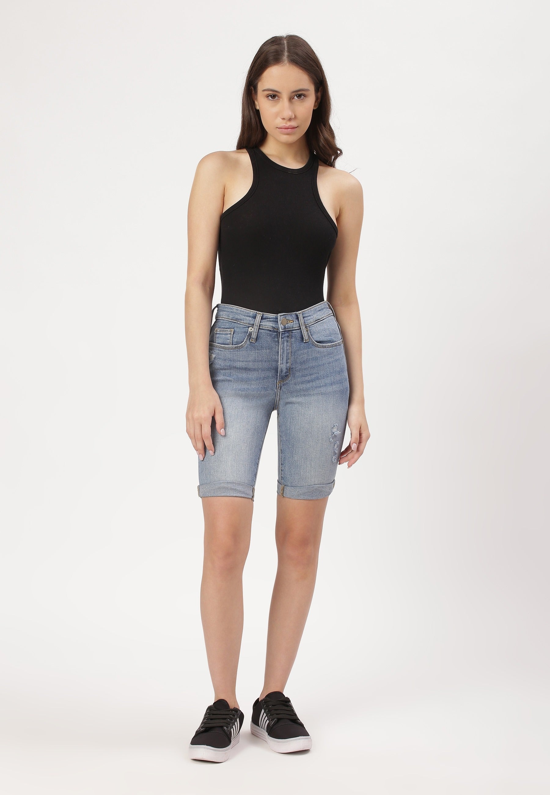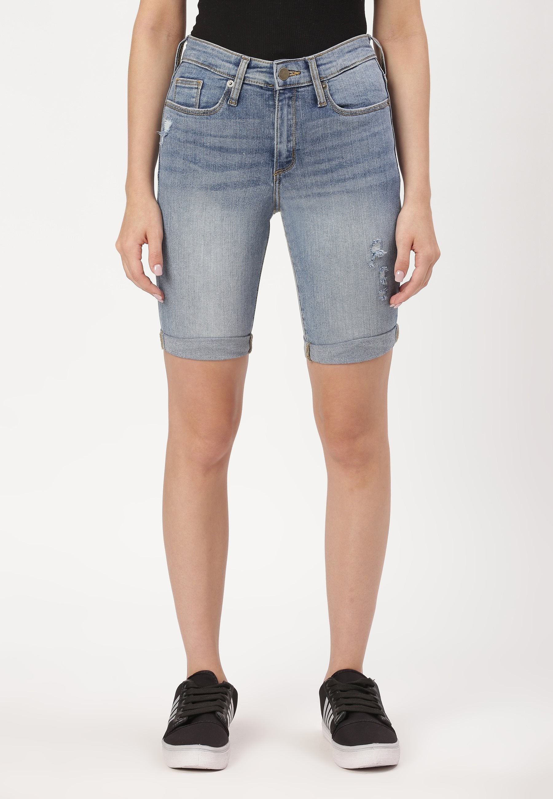 Mid Indigo Mid Rise Cycling Denim Shorts